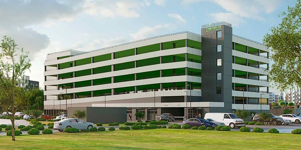 Место для строительства парковочного комплекса выбрано с учетом логистики: из любой точки жилого квартала "Равновесие" дойти до него можно буквально за несколько минут. Архитектурный облик здания, для отделки которого использованы алюминиевые панели насыщенного зеленого оттенка, гармонично сочетается с философией экологичного строительства Green Development, положенной в основу всего проекта.
