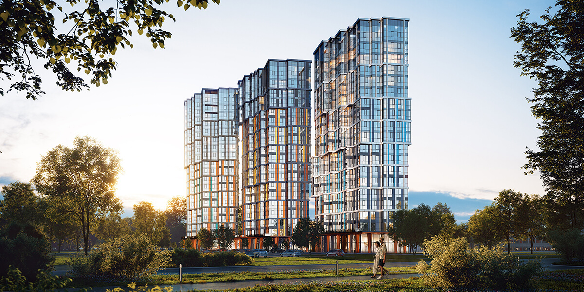Проект обладает уникальным преимуществом: он стоит на границе с Юго-Западным лесопарком. Это позволяет совместить динамику городского ритма с возможностью тихого отдыха среди зелени. Каждый корпус имеет индивидуально оформленное холл-лобби, где особым элементом дизайна служит стойка ресепшн, украшенная авторскими панно из керамогранита больших размеров.