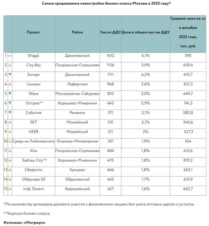 Пятерка флагманов: какие новостройки бизнес-класса Москвы покупали чаще всего в 2025 году